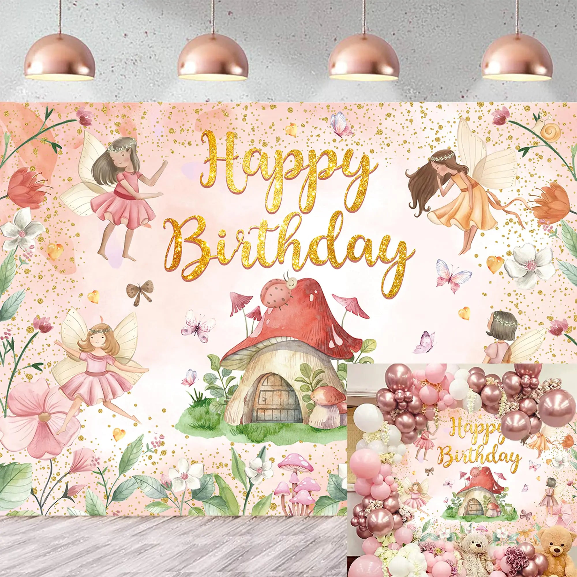 Fairy Happy Birthday Backdrop 8x6FT Flower Fairy Birthday Party Decorations My Fairy First Birthday Background for Girls Fairy Tale Theme Birthday Party Decorations Photo Props